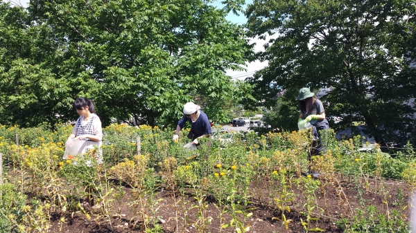 花摘みは各紅花畑ごとに収穫し、その後どれくらい採れたか量ります~