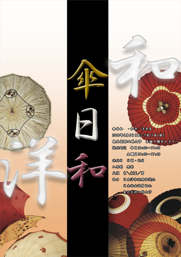 傘は、雨の降る日には雨傘、日差しの暑い日には日傘と、古くから用いられてきました。そして今日、私たちの生活に密着した、なくてはならない道具となっています。しかし、傘というものがあまりに身近すぎるため、現代の私たちは、その重要性や魅力に気付かずにいるのではないでしょうか。本展覧会では、そんな傘の魅力を再発見することを目的として、和傘と洋傘の2種に分類し、傘の変遷を時代を追ってご紹介しようと思います。どうぞごゆっくりご覧いただきまして、傘という存在のありかたを感じていただければと思う次第です。