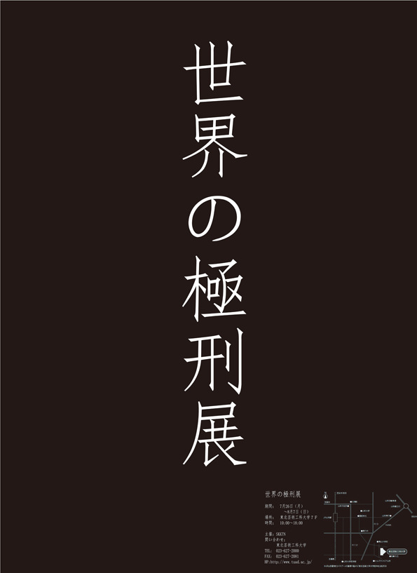 チーム極刑平成21年度より適用された裁判員制度により、私たち一般人も死刑判決を下す立場になりました。日本や世界で行われている死刑制度について、興味や関心を抱くきっかけとなってほしいという趣旨で企画しています。