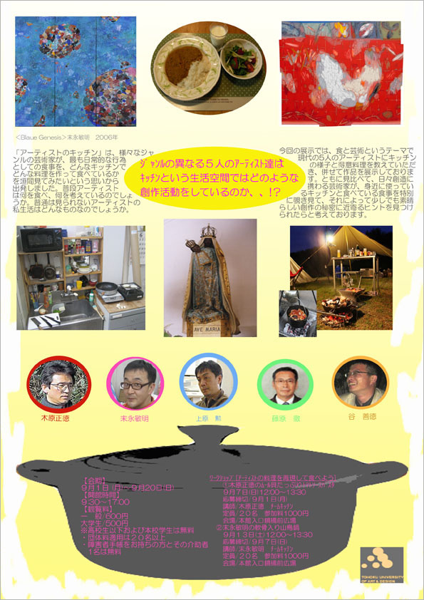 チームキッチンふだんみれないアーティストの食生活。彼らはキッチンで何を作り、何を食べ、何を考えているのでしょうか。木原正徳、末永敏明、上原勲、藤原徹、谷善徳の5人のキッチンです。