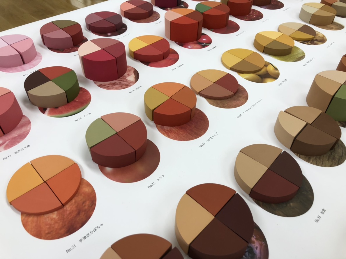 A:山形の食べ物の色を、四つの地方ごとに集めて作品にしました。山形の食の豊かさに注目して見て欲しいです。