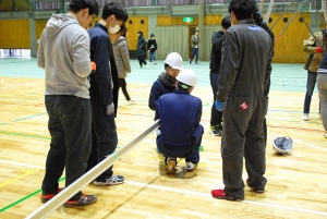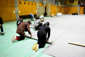 一日目は備品の搬入やマット敷き、レールライト設置、